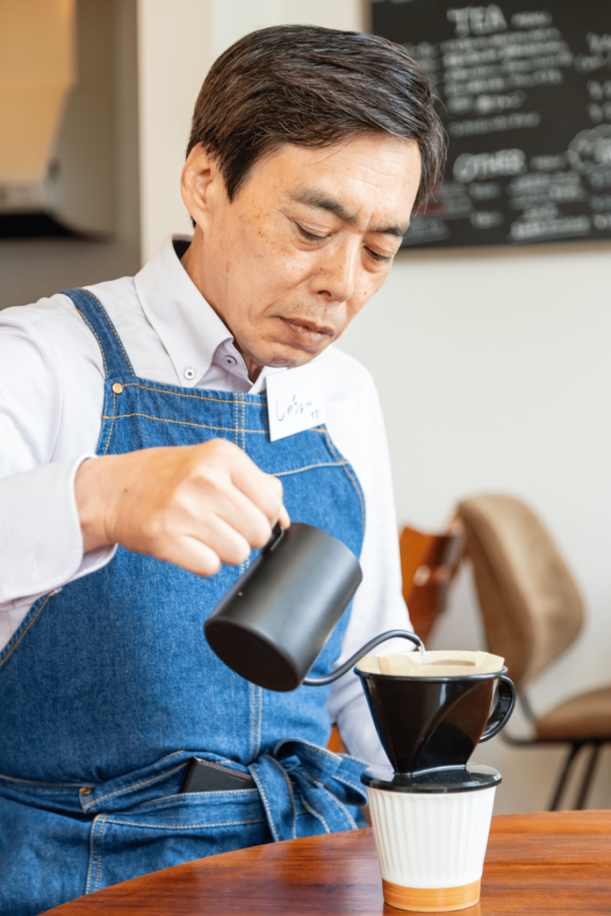 大学では「特別専任教授」、カフェでは「しゃちょ〜」としての顔を見せる松山先生。しゃちょ〜の淹れるコーヒーは絶品。