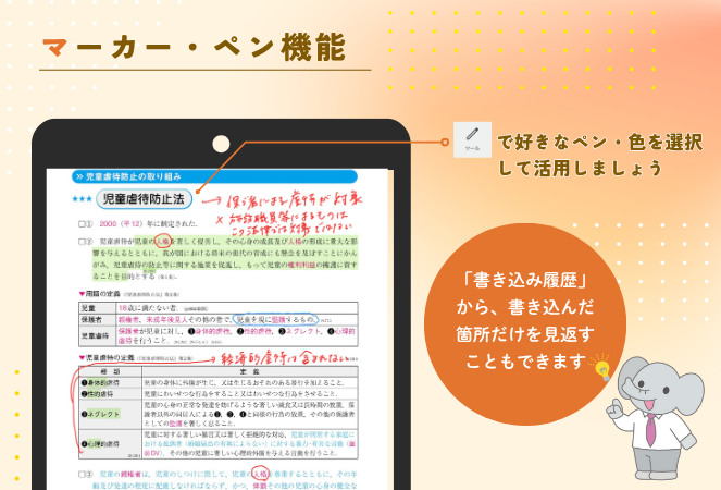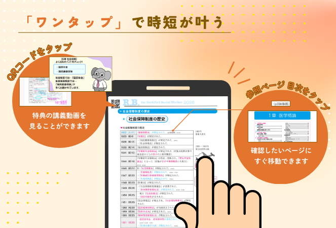 「ワンタップ」で講義動画や、確認したいページに一瞬で移動できるので、自分で一から調べる作業が減り時短に!忙しい方も効率的に学習を進めることができます。