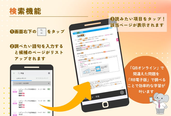 検索機能を使えば、調べ学習の時短に繋がります。
