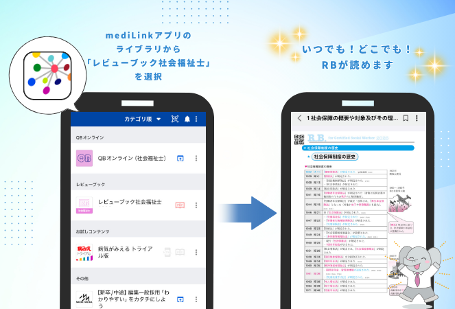 ② mediLinkのライブラリから「レビューブック社会福祉士2026」をタップ